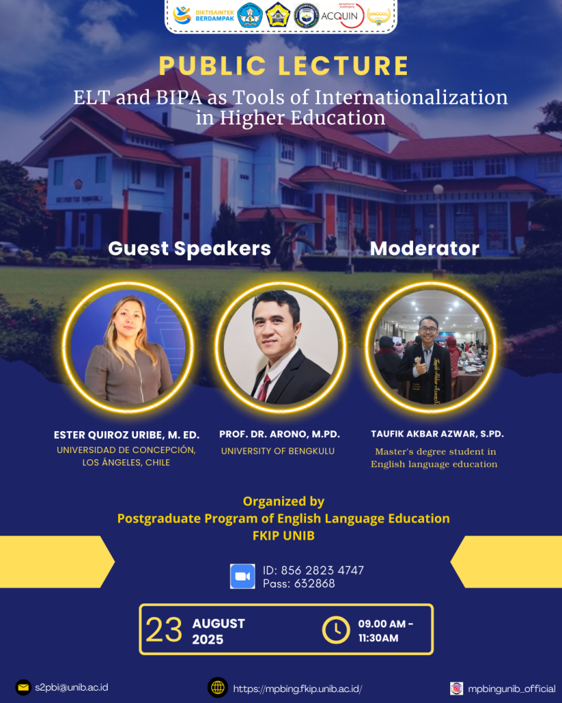 Bengkulu, 29 September 2025 — The Head of the English Language Education Postgraduate Program (MPBIng), Faculty of Teacher Training and Education (FKIP), Universitas Bengkulu, Dr. Iis Sujarwati, participated in the APSPBI Annual Business Meeting held in Bali, 26–27 September 2025. Read More …